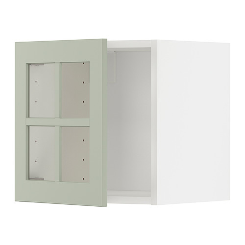 METOD armario de pared + puerta de vidrio, blanco / Stensund verde claro