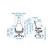 Gives your arms a comfortable support and reduces tension in your neck and shoulders since the padded armrests can be adjusted upwards/downwards, forwards/backwards and can also be rotated.
