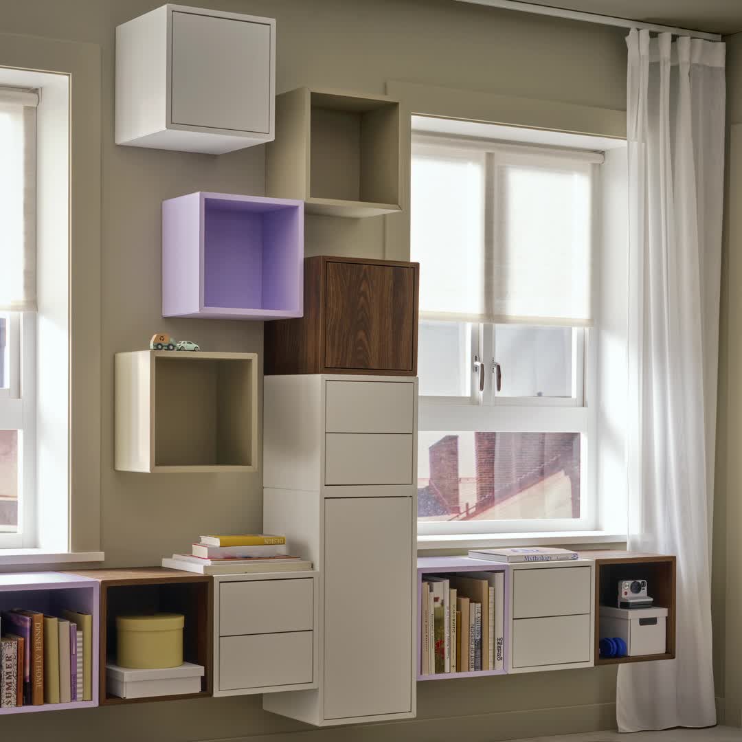 Complete with EKET suspension rail to easily hang the cube on the wall, or with legs/feet to place it on the floor.