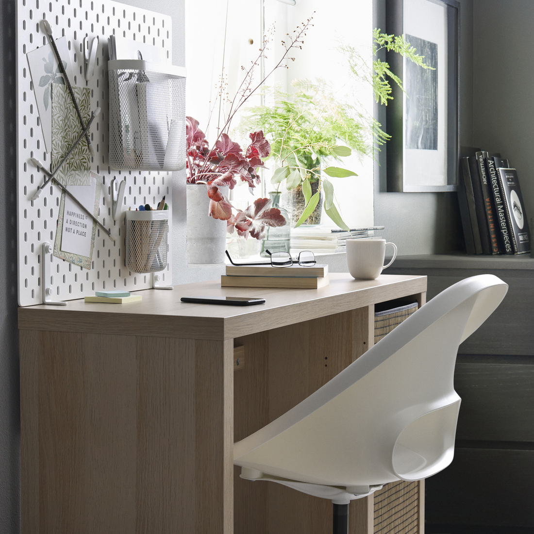 Shallow desk with a timeless expression where the smart design under the table top hides your cables. Easy to personalize by adding door, boxes or inserts from the KALLAX series.