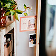 Favorite photos or don’t-forget notes can easily be fixed in the grooves on the sides of the mirror.
