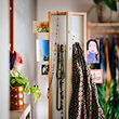 When creating products for the KOMPISHÄNG collection, I thought about students and young adults in temporary, often small homes. To learn more, we visited them and experienced their everyday lives and needs up close. The result is products that add a personal touch to a living space. Like the mirrors, with slots for family photos and other things that bring a comfy feel. No matter where and how you live, it’s important that it feels like yours – that it really feels like home.