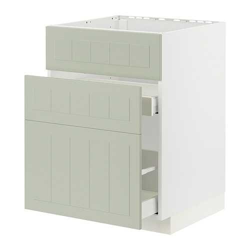 METOD / MAXIMERA base cab f sink+3 fronts / 2 drawers, white / Stensund light green