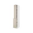 Un mueble de cocina METOD beige con una forma rectangular lisa y alta. Tiene dos puertas y múltiples estantes en el interior, ofreciendo almacenamiento organizado.