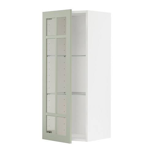 METOD wall cabinet w shelves / glass door, white / Stensund light green