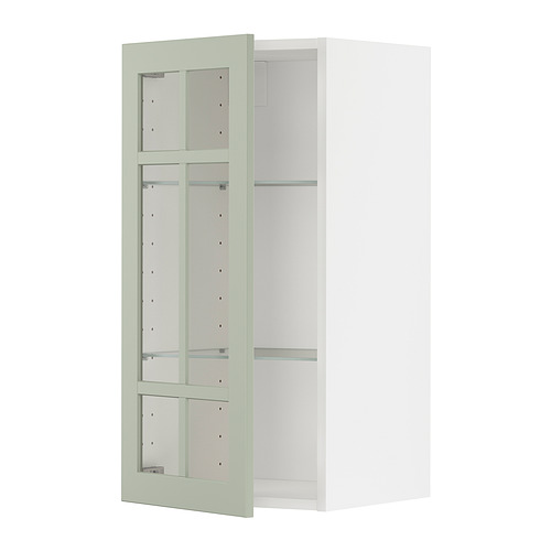 METOD wall cabinet w shelves / glass door, white / Stensund light green