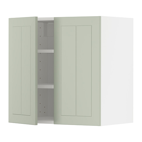 METOD wall cabinet with shelves / 2 doors, white / Stensund light green
