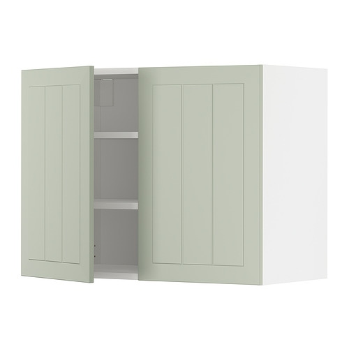 METOD wall cabinet with shelves / 2 doors, white / Stensund light green