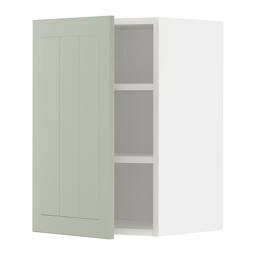 METOD wall cabinet with shelves, white / Stensund light green