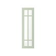 Una puerta de armario STENSUND de color verde claro con un diseño de panel de vidrio sombreado.