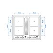 Right rear: 21x19,1 cm – 2100W, booster 3000W.
