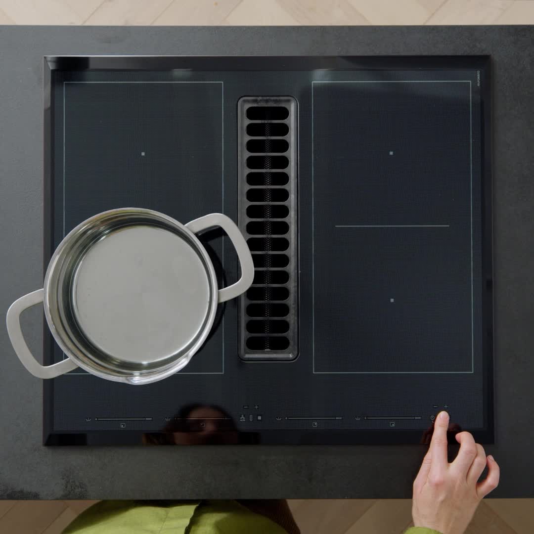 Induction hob with integrated extractor.