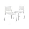 Dos sillas de plástico blanco con patas de acero, de diseño minimalista, aptas para comedor u oficina.