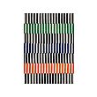 Una alfombra rectangular VÄNDPLATS de tom hedqvist, con rayas negras, verdes, azules y naranjas, hecha de polipropileno.