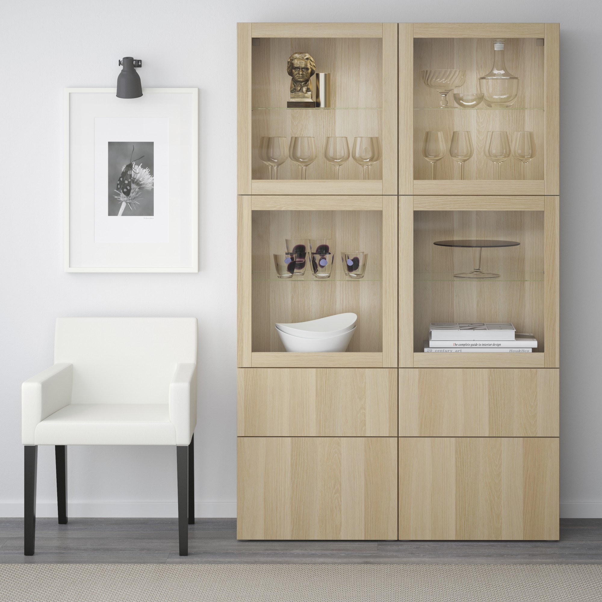 BESTÅ Vitrina, LAPPVIKEN efecto roble tinte blanco / SINDVIK vidrio incoloro, 120x40x192 cm