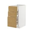 METOD / MAXIMERA armario bajo con 3 cajones, blanco / Voxtorp efecto roble