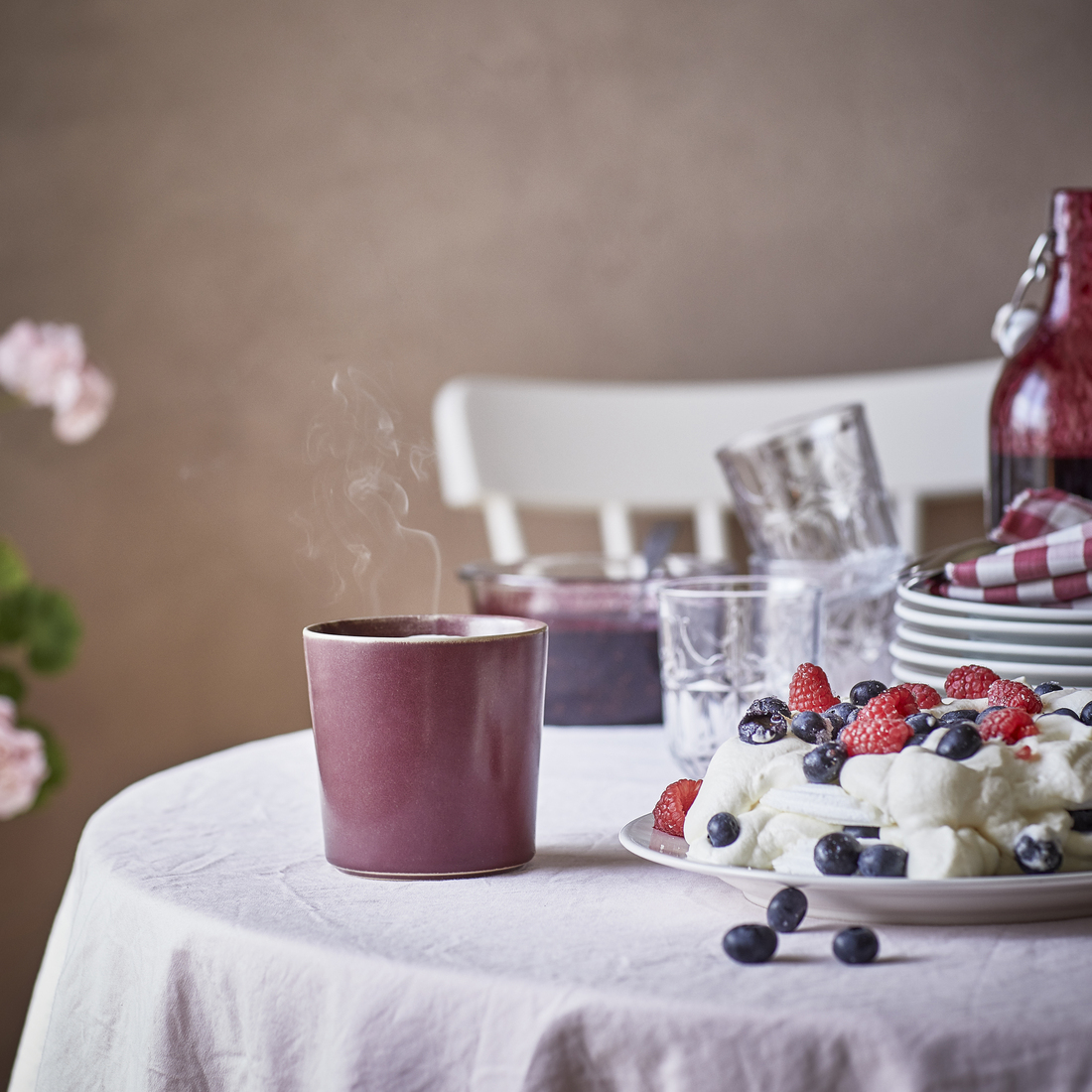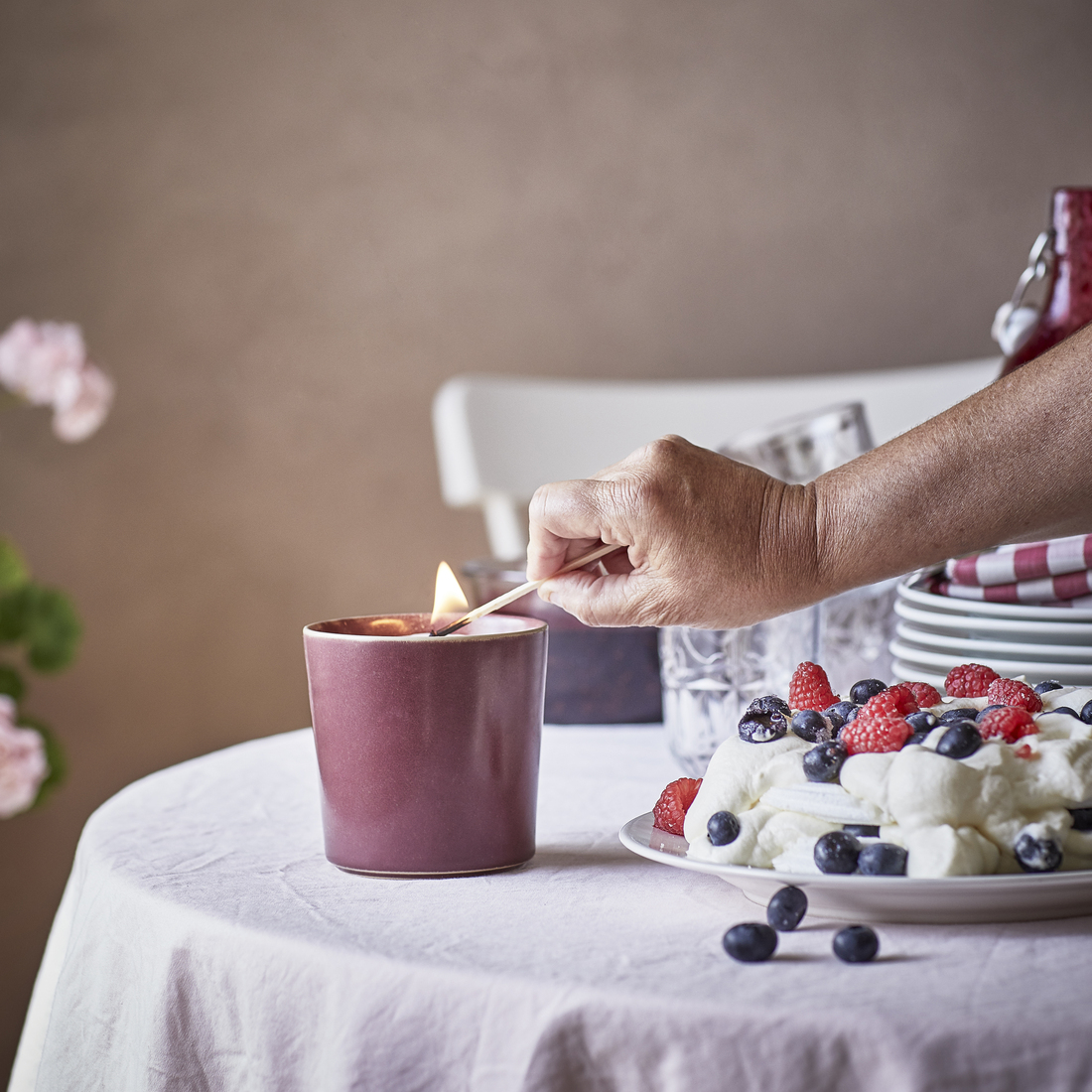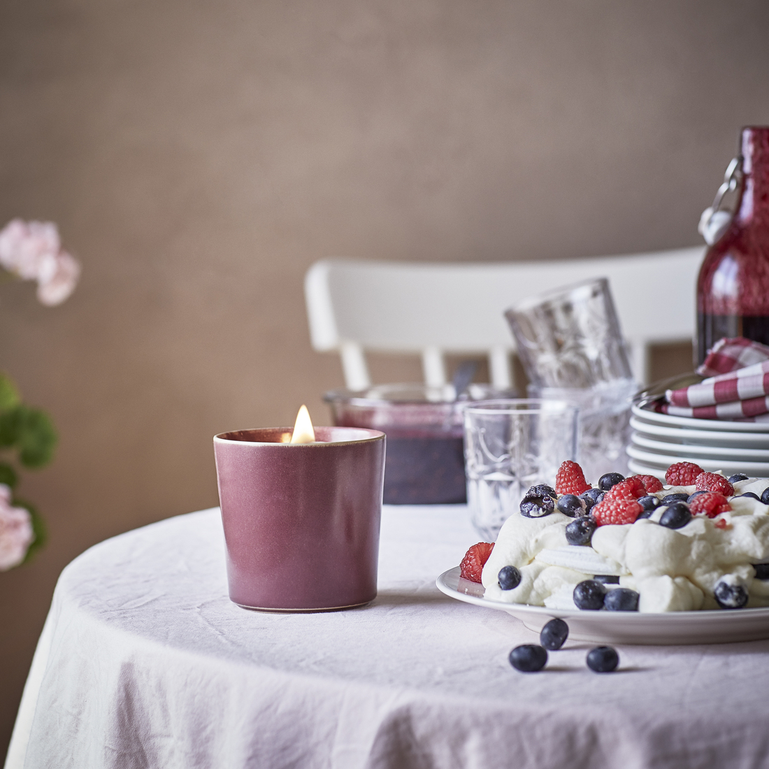 vela perfumada en bote de cerámica, frutos del bosque, 50 horas, rojo, Ø10 cm