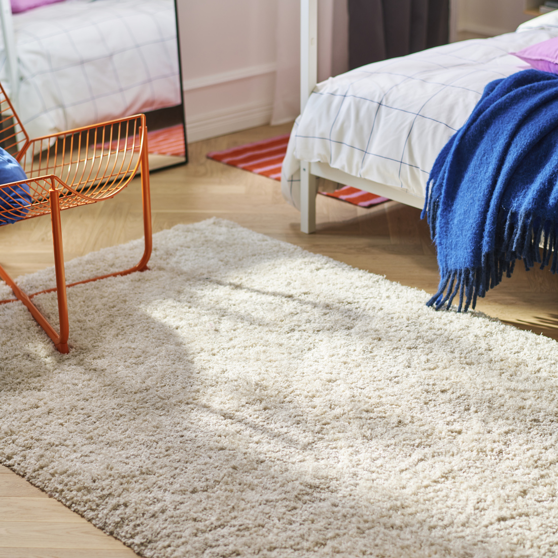 Ideal para el dormitorio, ya que esta alfombra tiene un tacto suave, crea un entorno acogedor y amortigua los ruidos.