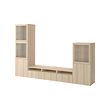 BESTÅ TV bench with doors and drawer runner, push-open, LAPPVIKEN white stained oak effect / SINDVIK clear glass, 300x42x193 cm