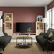 Juego de almacenamiento BESTÅ de madera clara: armarios altos con tapas de cristal, unidad central amplia, almacenamiento de fondo cerrado, ligero, moderno.