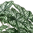 Planta artificial con hojas verdes exuberantes y vibrantes con veteado blanco. El follaje falso parece realista y saludable.