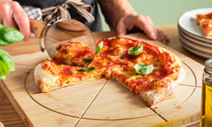 Helps you cut the pizza or your rolled out dough into perfect pieces.