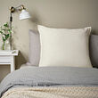 LAGERPOPPEL cushion cover in off-white has a textured, matte-sheen surface and flange edging that adds style and stability to the cushion. Pairs well with patterned or other solid-colored cushions and the large size is comfy for reading in bed.