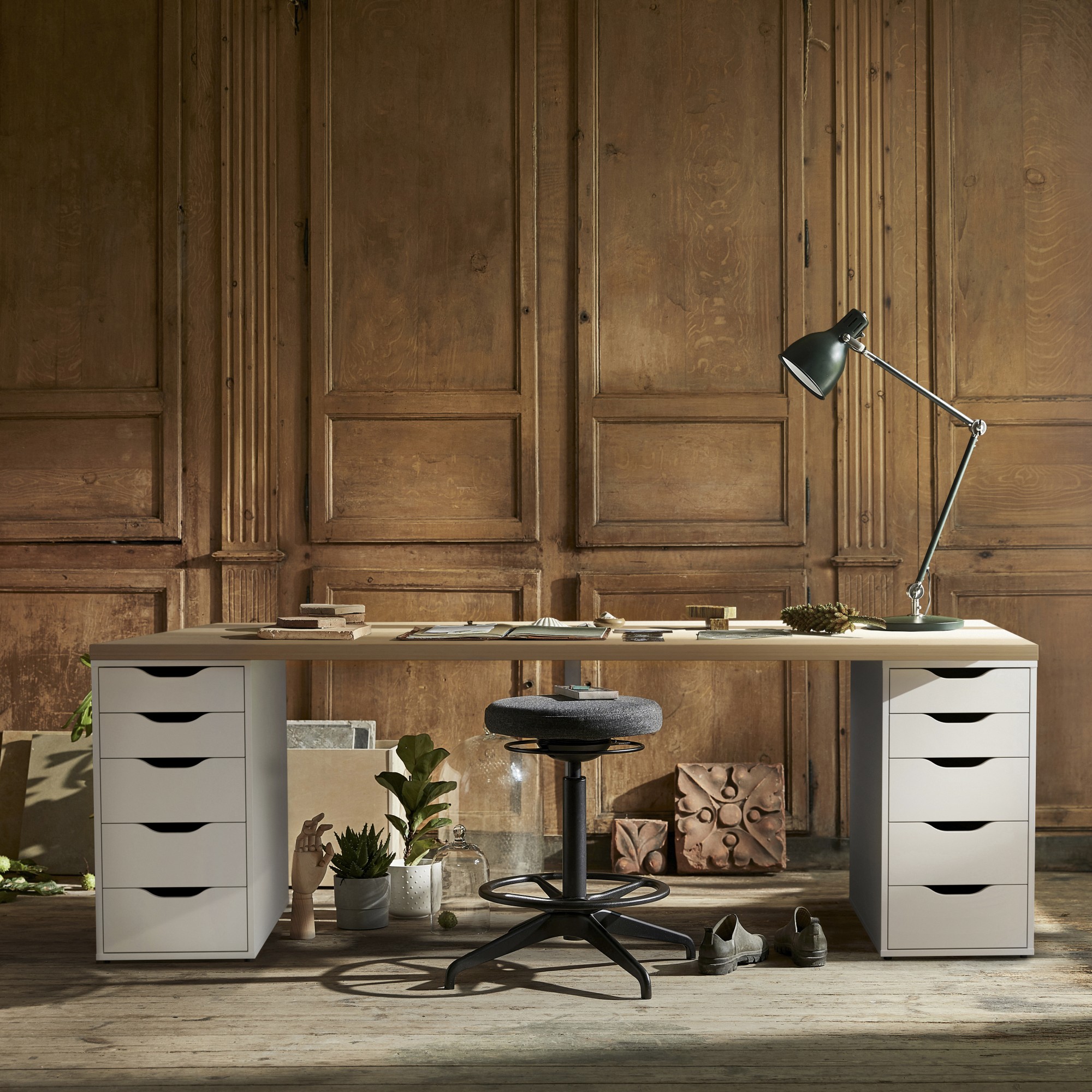 LAGKAPTEN / ALEX desk, white stained oak effect / white, 200x60 cm