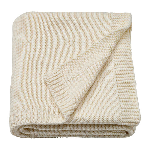 LEN baby blanket, white / knitted
