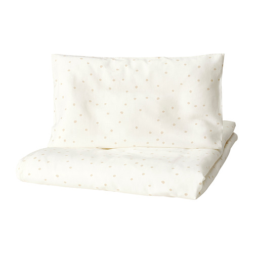 LEN duvet cover 1 pillowcase f crib, white beige / dot pattern