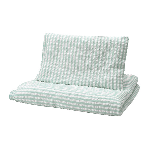 LEN duvet cover 1 pillowcase f crib, white blue / stripe pattern seersucker
