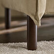 Primer plano de la pata del sofá, acabado liso, madera resistente, diseño elegante.