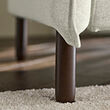 Primer plano de la pata del sofá, madera oscura y elegante, que muestra un diseño sólido y una artesanía fina.