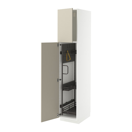 METOD high cabinet with cleaning interior, white / Havstorp beige