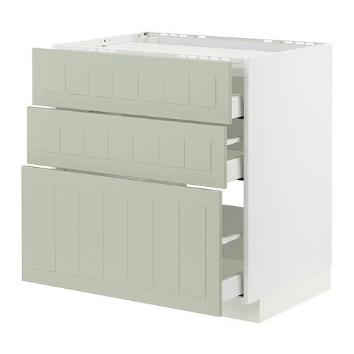 METOD / MAXIMERA base cab f cktp / 3 fronts / 3 drawers, white / Stensund light green