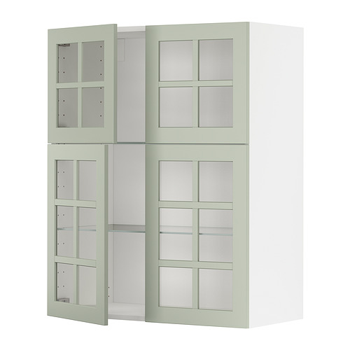 METOD wall cabinet w shelves / 4 glass drs, white / Stensund light green