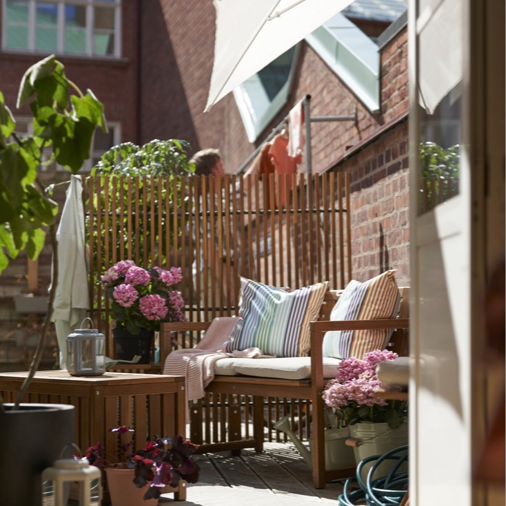 “When we designed NÄMMARÖ, we wanted to create a family of modern outdoor furniture that can both blend in and stand out. The square frame used throughout the series contributes to a uniform look and ties the different products together. The soft honey color ages with grace and is easy to match with things you already have at home and the greenery on your balcony or terrace.“