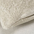 Primer plano de la funda de almohada beige suave y afelpada con cremallera visible, resaltando su textura supersuave y su calidad.