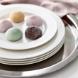 Decorative and simple. Festive and functional. Personal and easy to match with other dishes. It’s also made from a material similar to bone porcelain, and is slim and elegant, yet sustainable and durable.