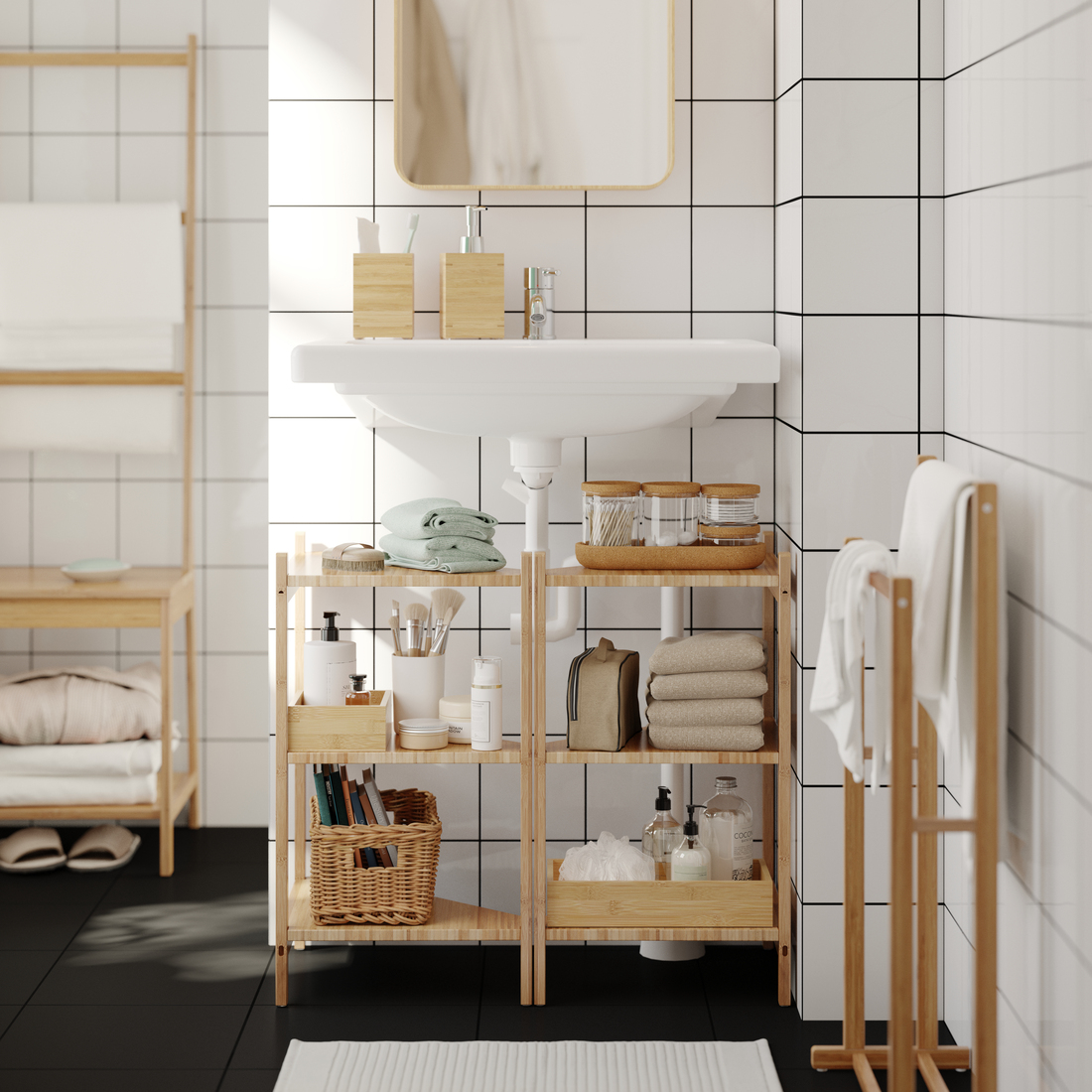 Perfect for a corner space or place 2 of these units together to create storage under your wash-basin. Made from bamboo, our RÅGRUND bathroom series is perfectly suited to humid areas like the bathroom.