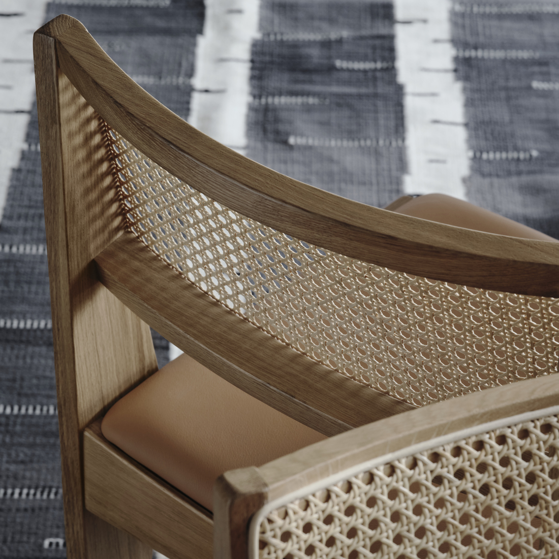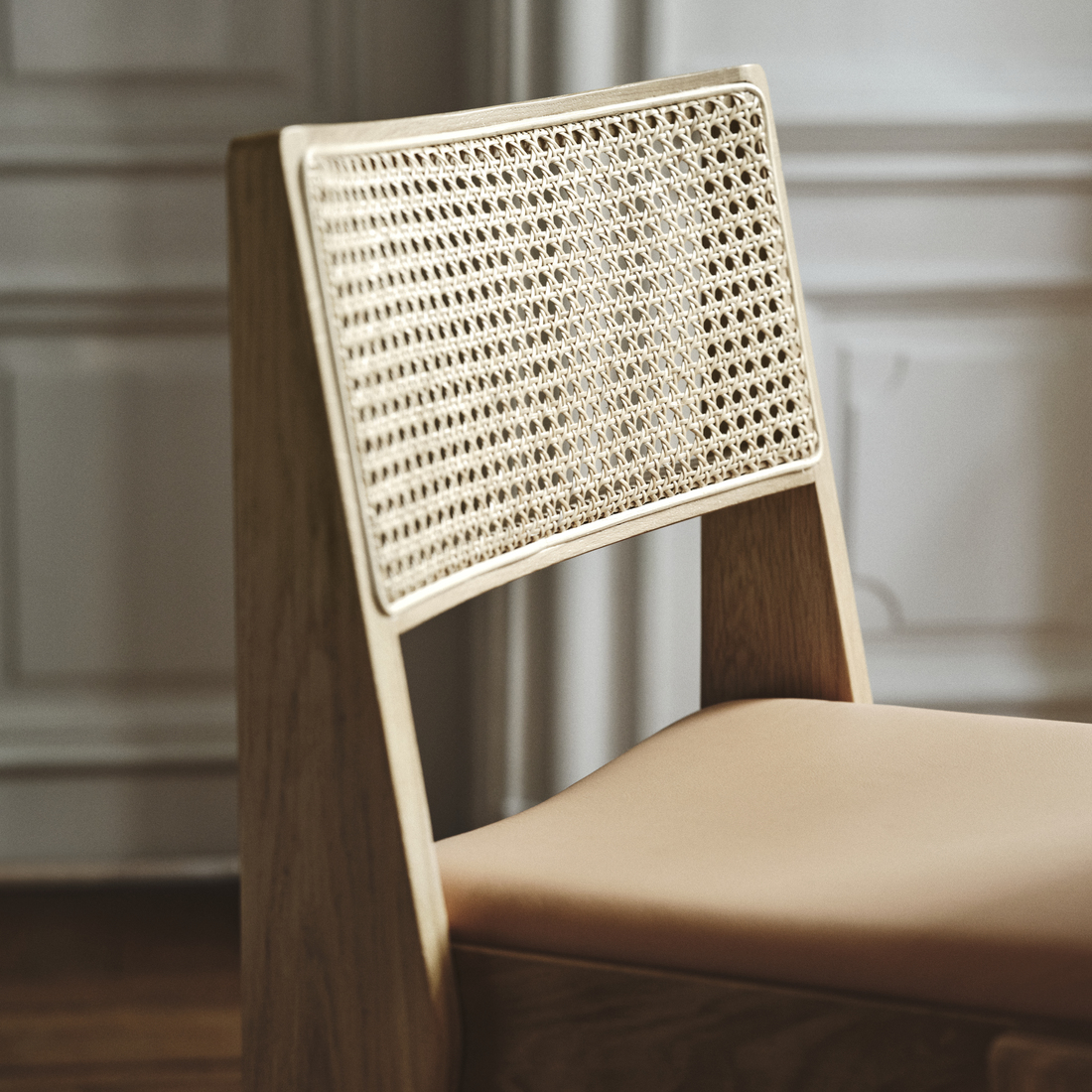 High-quality chair components such as genuine leather seat and natural rattan backrest enhance the aesthetic, offering a luxurious feel and appearance.
