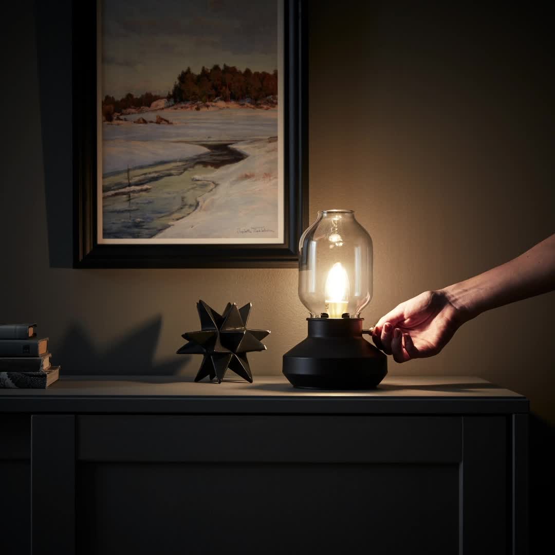 "When I designed TÄRNABY I wanted to create a lamp that provides mood lighting which is soft and warm. I was inspired by old kerosene lamps, and used glass so that the light bulb is visible and becomes a decorative touch, just like the flame in older lamps. I was also inspired by the kerosene lamp’s flexibility in the home. That’s why the brightness can be adjusted with the dimmer on the side ‒ and even though it has a cord, the lamp is easy to place and move around."