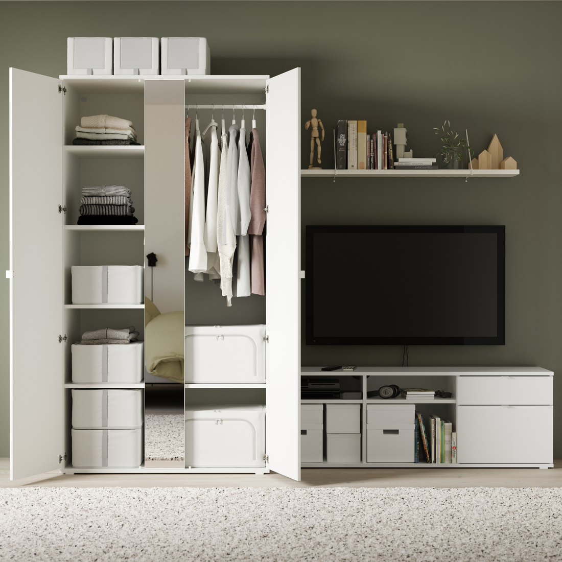The integrated full-length mirror makes the room feel bigger and it saves on wall space - a clever solution for smaller living spaces.