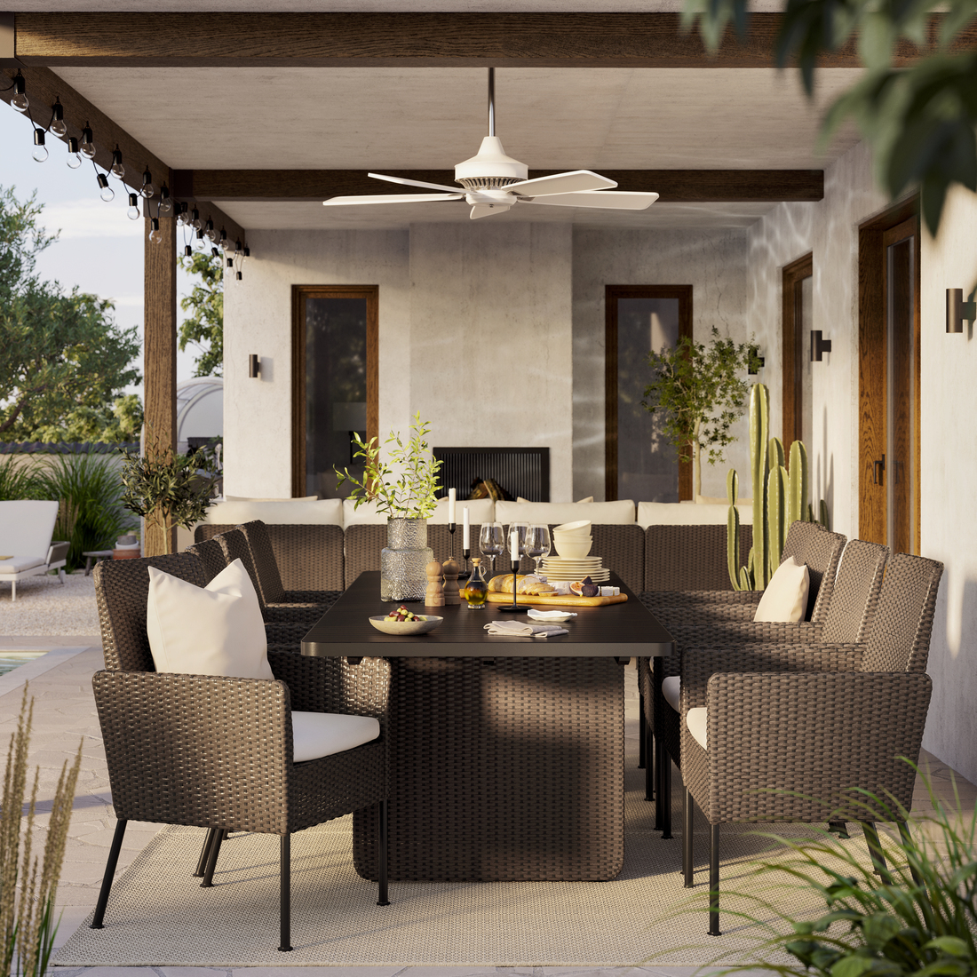 Plastic rattan has the beautiful, handwoven look of natural rattan, while being more durable for outdoor use.
