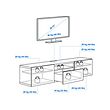 Aconsejamos un mueble de TV un poco más ancho que el televisor. Este mueble es compatible con televisores de hasta 72 pulgadas. Puedes elegir un televisor más grande si no pesa más de la carga máxima especificada para la parte superior del mueble.