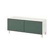BESTÅ mueble TV con puertas, blanco / Krukmakare gris verdoso oscuro