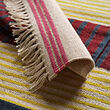 Duradera alfombra de yute con un estampado de rayas hecho con coloridos hilos de lana.
