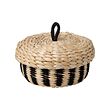 caja con tapa, fibras de platanera / negro motivo a rayas