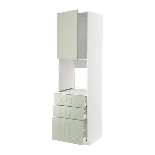 METOD / MAXIMERA armario alto para horno 3 cajones, blanco / Stensund verde claro