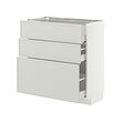 METOD / MAXIMERA armario bajo con 3 cajones, blanco / Aspudden gris claro
